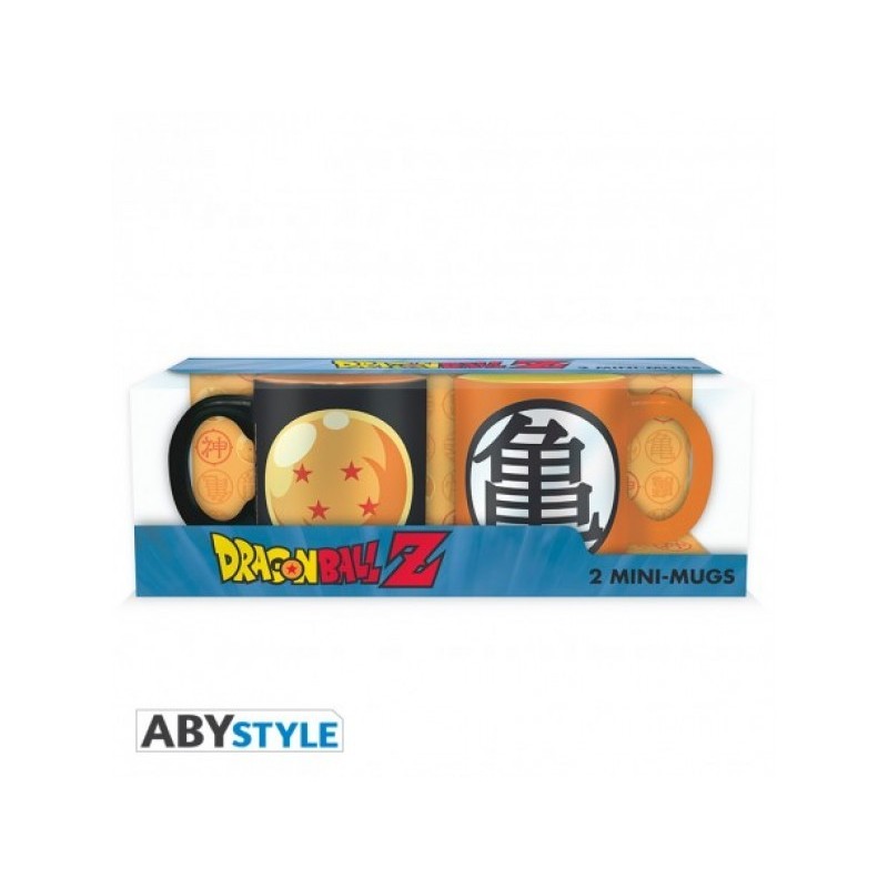 Mini Mugs avec dessin de la boule de cristal à 4 étoiles et les différents emblèmes de la tenue de Goku sur ces superbes mini-mugs Dragon Ball Z par ABYstyle. Les mini mugs sont vendus en coffret de 2 pièces, ces mugs sont parfaitement adaptés à vos envies de café à tout heure de la journée.