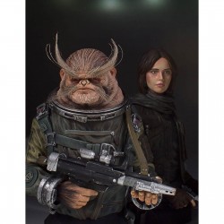La numérisation des données 3D, du costume réel et de son arme utilisé à l’écran font de cette sculpture une réalisation particulièrement aboutie. Bistan a été sculpté numériquement par les artisans de Gentle Giant Ltd. afin d’assurer la précision des traits, le caractère et l’exécution correcte jusqu’à la dernière boucle de sa combinaison et sa forme d'expression. Le buste de Bistan présente ses yeux particulièrement expressifs enfoncés dans leurs orbites, son fusil laser est réalisé de façon précise et une variété de caractéristiques saillantes en fausse fourrure afin de garantir la réplique la plus authentique possible de ce personnage unique. Ce buste Rogue One : A Star Wars Story en édition limitée à collectionner et à l’échelle 1/6 est numéroté à la main et est livré avec un certificat d’authenticité Gentle Giant ltd. correspondant.