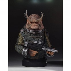 Bistan est un Lakaru qui a rejoint la rébellion galactique après que l’Empire a pourchassé la rébellion sur sa planète natale. À la suite de ce conflit, il s’est enrôlé comme soldat pour l’Alliance. Lors de la bataille de Scarif, Bistan était canonnier dans un chasseur U-Wing de l’Alliance. Les fans de STAR WARS et particulièrement de Rogue One sont tombés amoureux de son enthousiasme maniaque lors des phases de combat. Son rôle assez court mais important pour l’opération visant à obtenir les plans de l’Étoile Noire fait partie de la nouvelle collection de bustes à l’échelle 1/6 de Gentle Giant LTD.